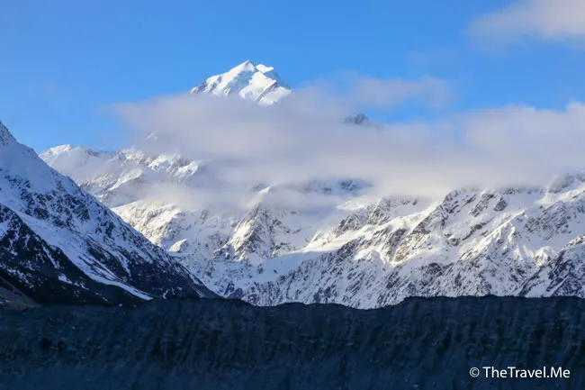 庫克山因為夠高,仍然受陽光照耀,綻放出奪目的銀白色。