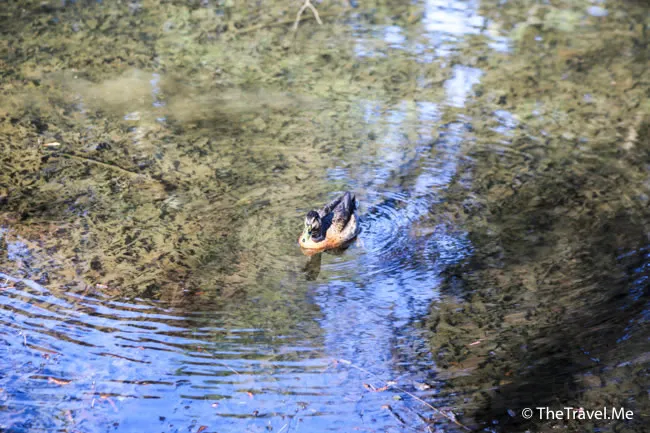 再往前走,便有一個小小的池塘,但見小橋綠樹,野鴨對對雙雙,恍如童話世界。