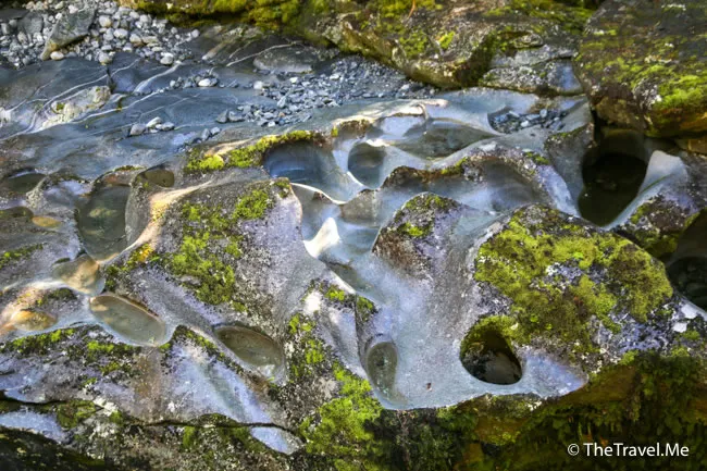 受流水和石頭侵蝕,小溪形成多個圓洞,奇幻有趣。