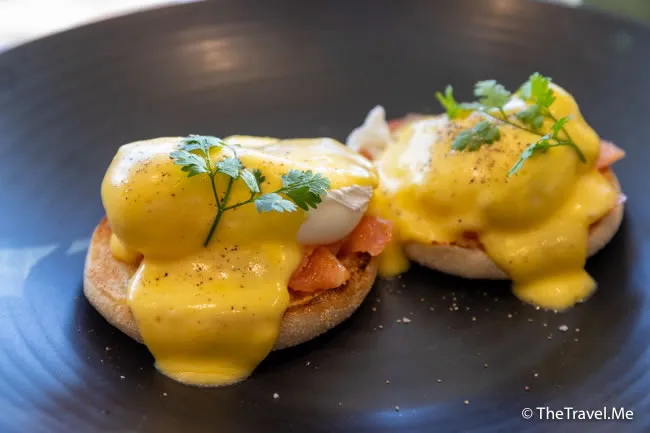 早餐是自助,另外還可以揀一款同蛋有關的菜式,豬豬揀的斑尼迪蛋賣相精美,蛋香十足。
