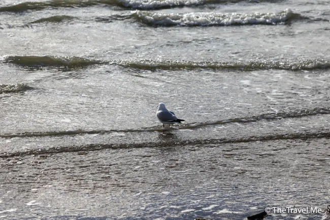 海灘上有很多海鷗,不怕人也不會襲擊人,人鳥相安無事。