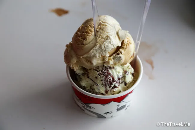 使命灣有一間出名的雪糕店,粗眉仔點了薄荷朱古力,薄荷味濃,同香甜的朱古力成日絕配。