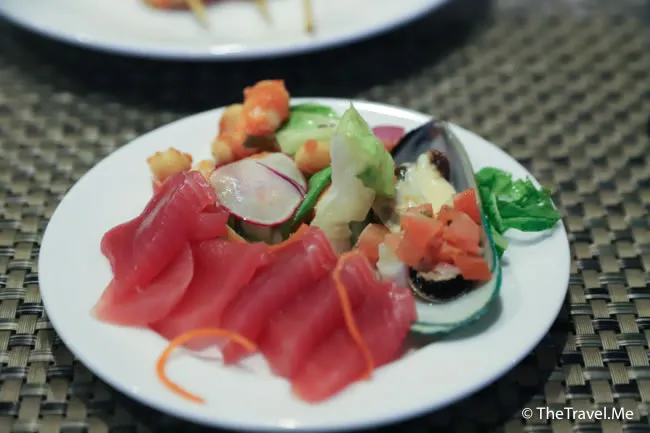 頭盤竟然有新鮮吞拿魚刺身,令粗眉仔驚喜萬分,後來才知道,原來帛琉每年都出口大量呑拿魚去日本。