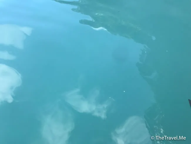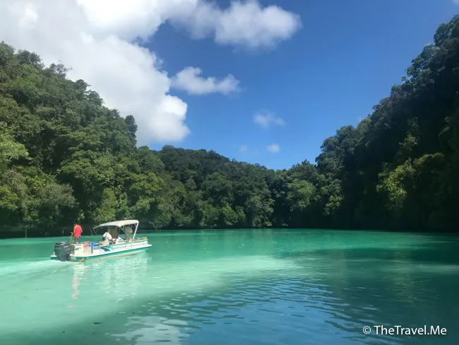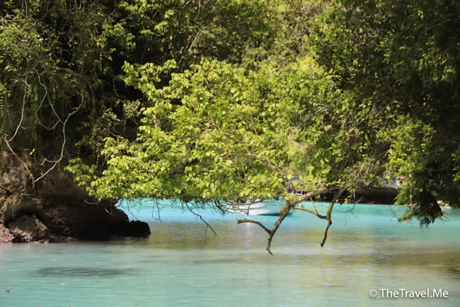 未幾快艇便駛到一個隱蔽的海灣,這一帶的海水呈粉藍色,非常夢幻。