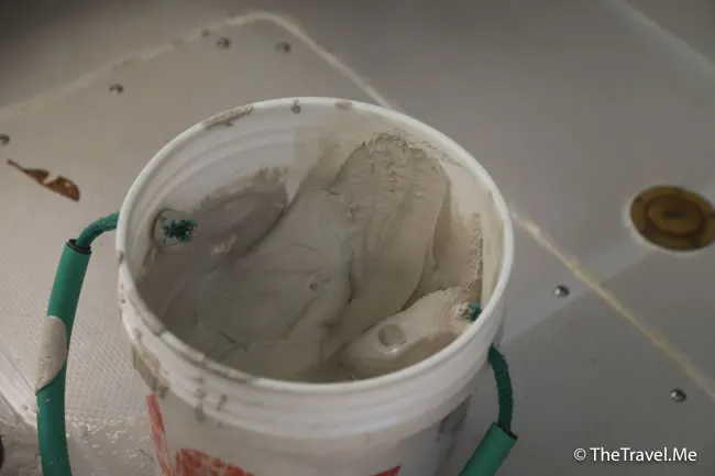 美顏的海底泥原來沉在水底,本地導遊潛落水裝了滿滿一桶上船。